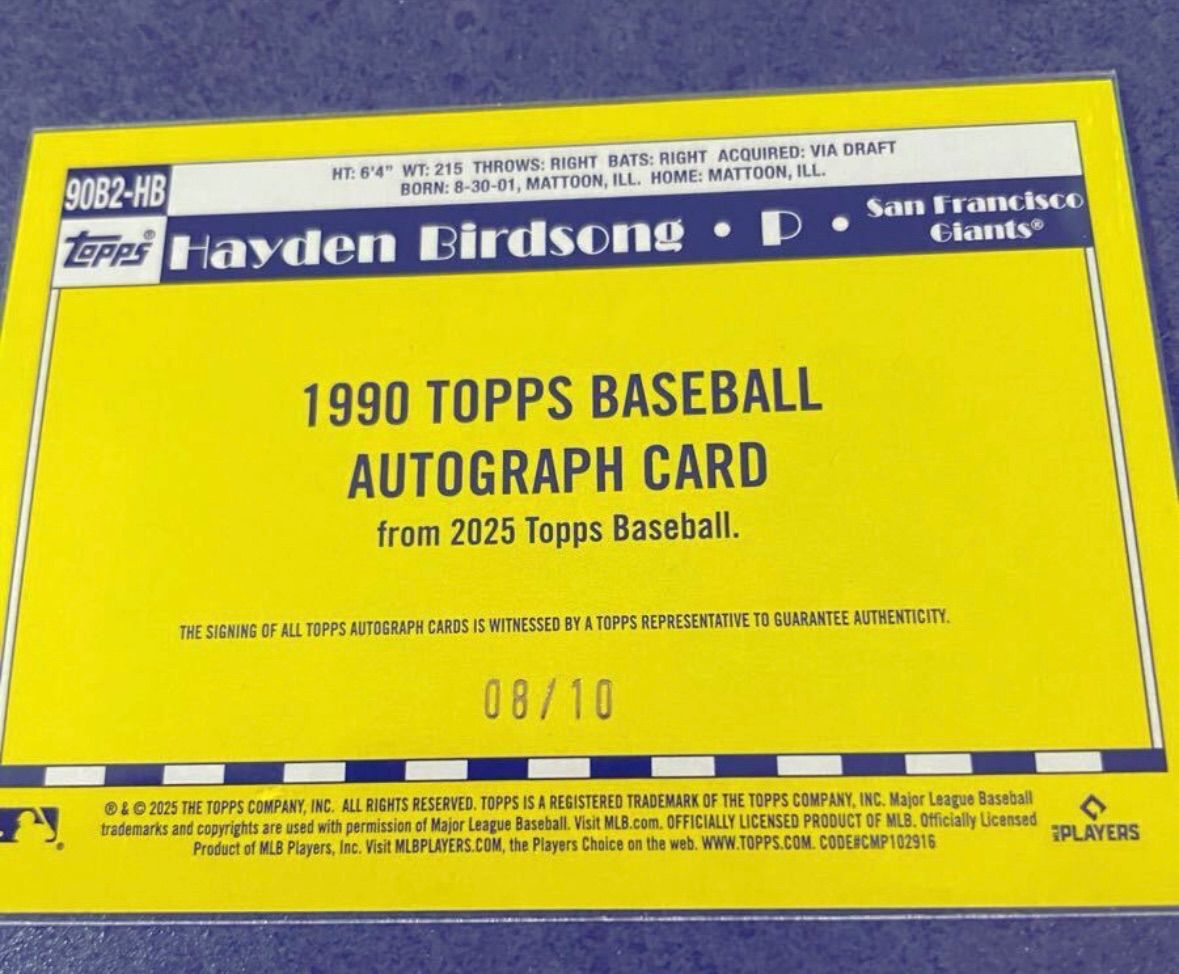 Topps 2025 series 2 HAYDEN ヘイデン バードソング 直書き直筆サイン RC ルーキー 1990 autograph