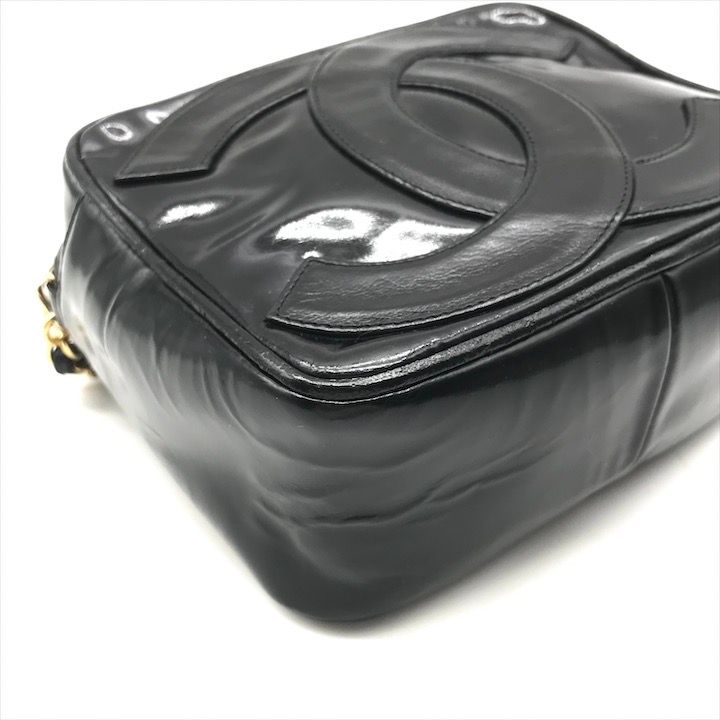 CHANEL シャネル デカココマーク エナメル パテント フリンジ ミニ チェーン ショルダー バッグ レディース かばん 鞄 ブラック tm 104