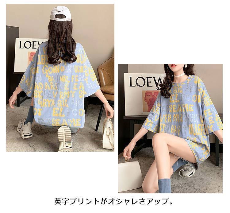 ドロップショルダー 半袖 ワンピースTシャツ レディース ルームウェア ロンT ゆる トップス Tシャツ クルーネック 体型カバー ダンス衣装 膝上 リラックス 英字プリント シンプル nagin 606679