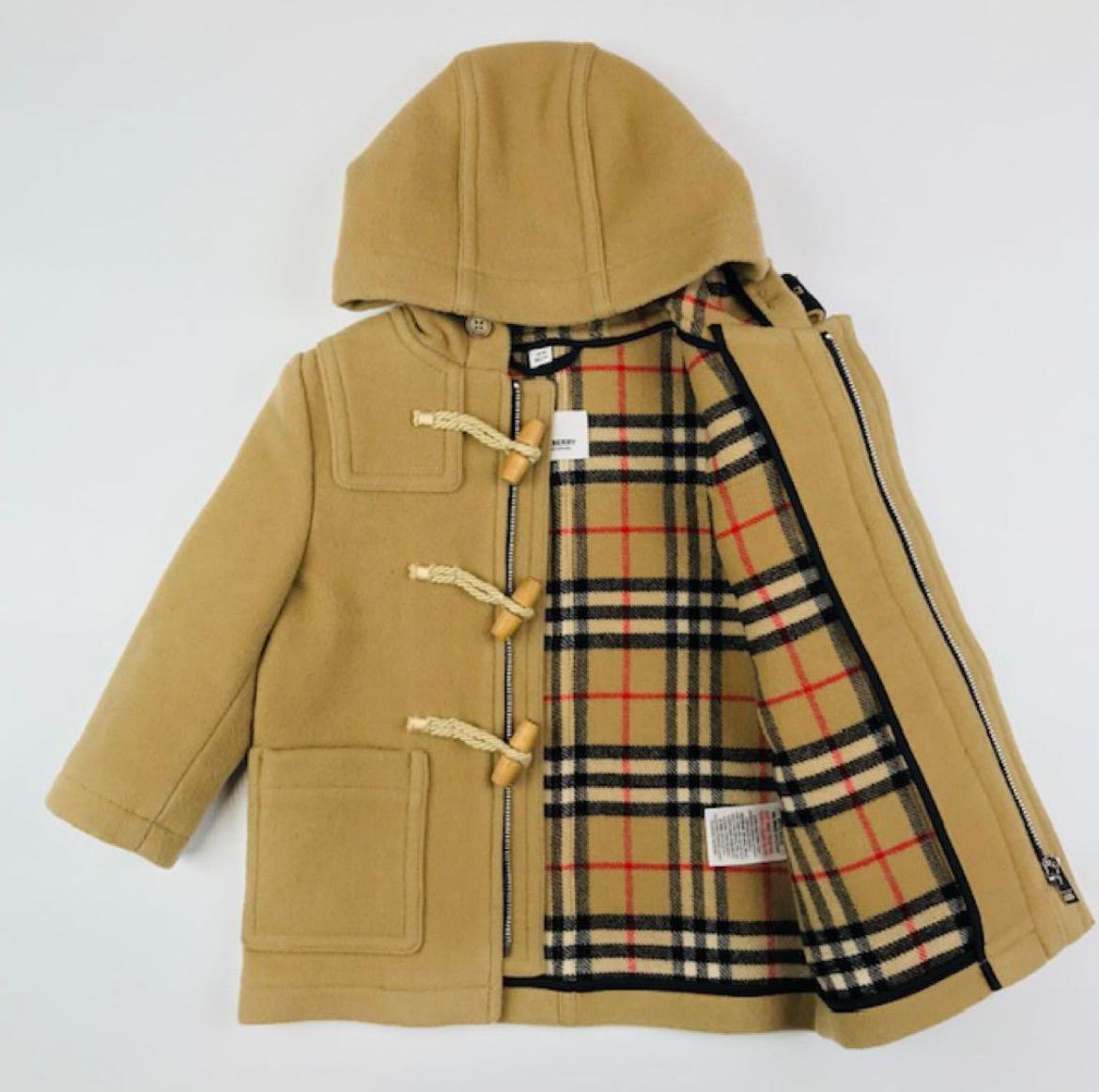 バーバリー キッズ 裏地メガチェック総柄 ブランドロゴ刻印トグル フルジップ比翼仕立て ダッフルコート 86㎝ チルドレン キッズコート 秋冬物 ジャケット カジュアル ガールズ ボーイズ ユニセックス キッズジャケット