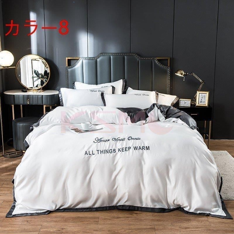 布団カバー セット ベッドカバー 寝具セット 枕カバー おしゃれ 北欧風 柔らかい 接触冷感 春夏 模造シルク 防臭 防ダニ 洗える 4点セット セミダブル