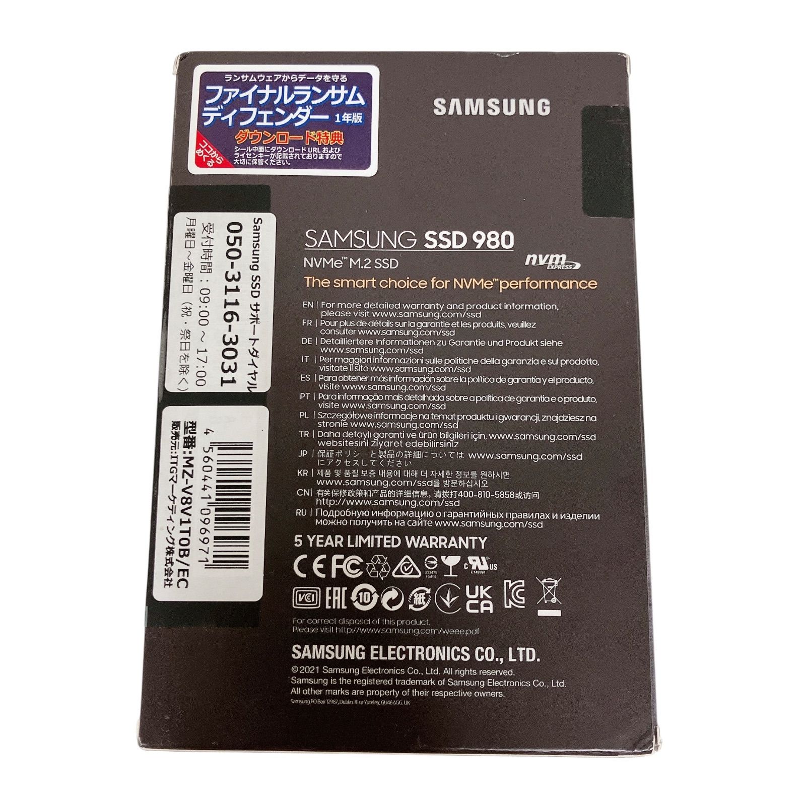 WJ 21 Samsung サムスン SSD 980 NVMe M.2 1 TB MZ-V 8 V T 08 PC パーツ