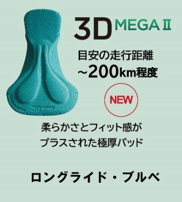インドアバイク用に開発された「ベンチレーション ビブ パンツ」は、柔らかさとフィット感がアップデートされた新しい極厚パッド「3D-メガⅡ」を採用し、長時間乗車姿勢が続くインドアバイク時のお尻への負担を軽減します。