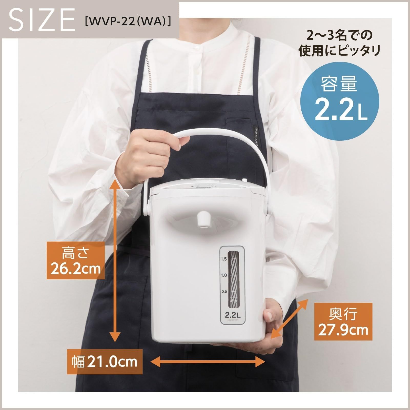 WA 安心機能 お手入れ簡単 WVP 22 ポット ホワイト 保温ポット WEB モデル 湯沸かし 2 2リットル 電気 電気ポット 保温 ピーコック エアーポット 使いやすさを追求 小型 誰でも簡単 l