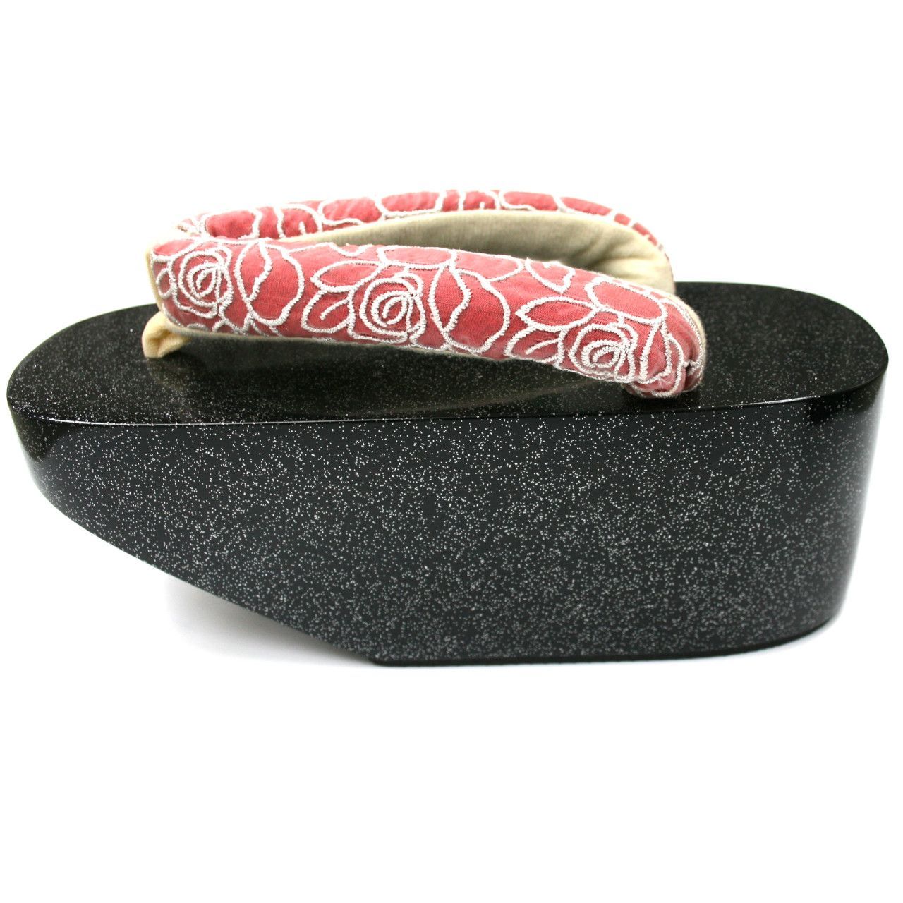 ぽっくり 刺繍鼻緒 黒台 ラメ入り