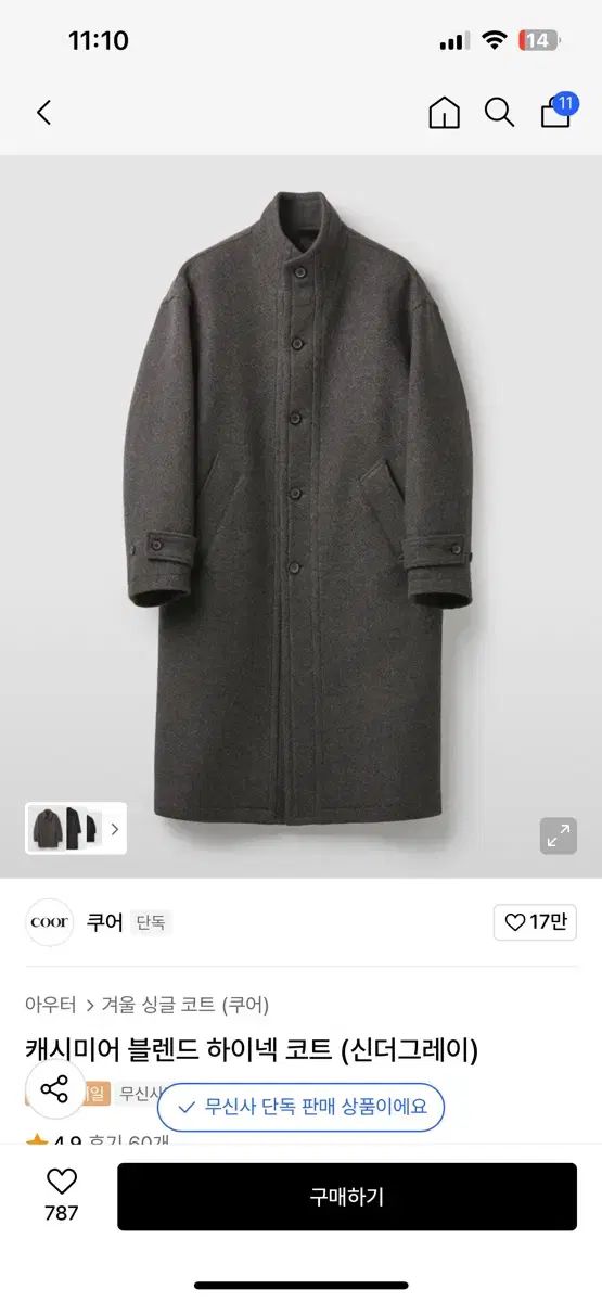 シンダーグレー カラーのカシミアブレンド ハイネック コートです。包装のみ開けた新品です。