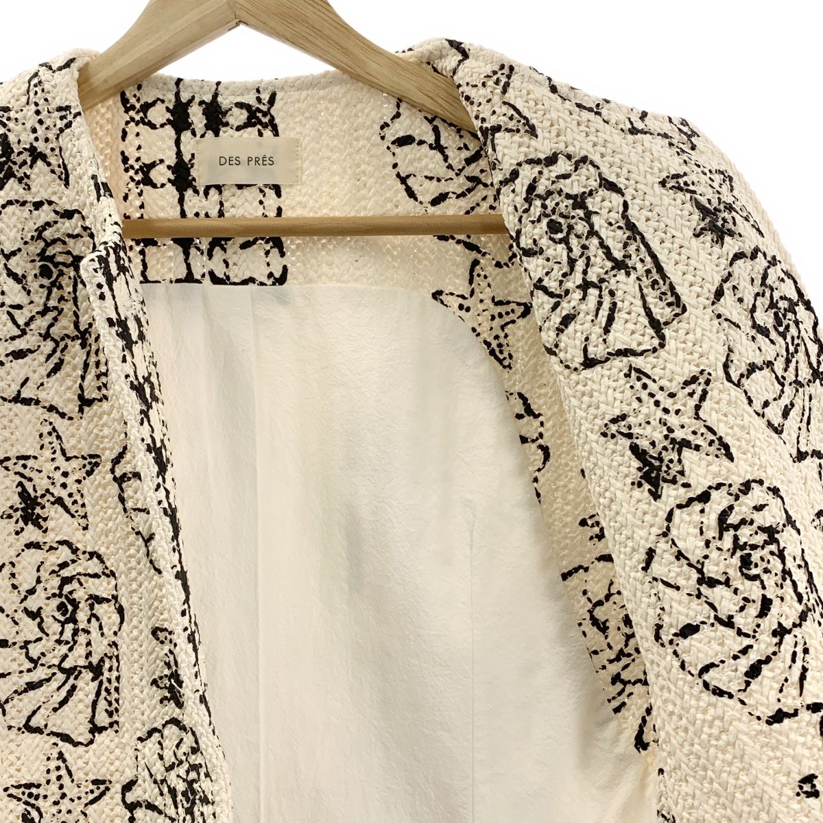 DES PRES | デプレ シェルプリント ラッセルニット クルーネック ジレ ベスト F ホワイト|ブラック レディース