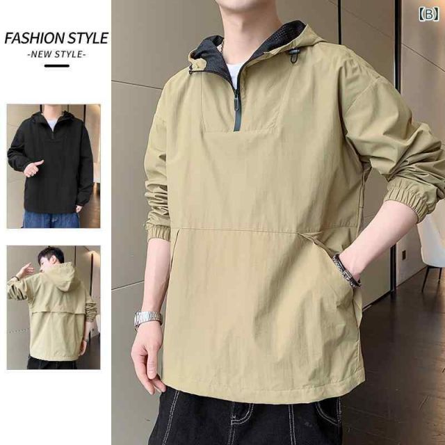 2 XL 秋冬 コーデ メンズ 服 シンプル ファッション オシャレ 大人 かっこいい 大きいサイズ ストリート 紳士服 カジュアル セーター ウインドブレーカー プルオーバー 長袖 フード付き