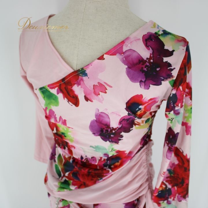 社交ダンス 衣装 上下セット ツーピース パーティ衣装 レディース オールシーズン Leirena レイリーナ ピンク系 ピンク 赤 緑 フラワー 花柄 伸縮性 ゴムウエスト レディス モダンダンス パーティー スカート トップス セットアップ