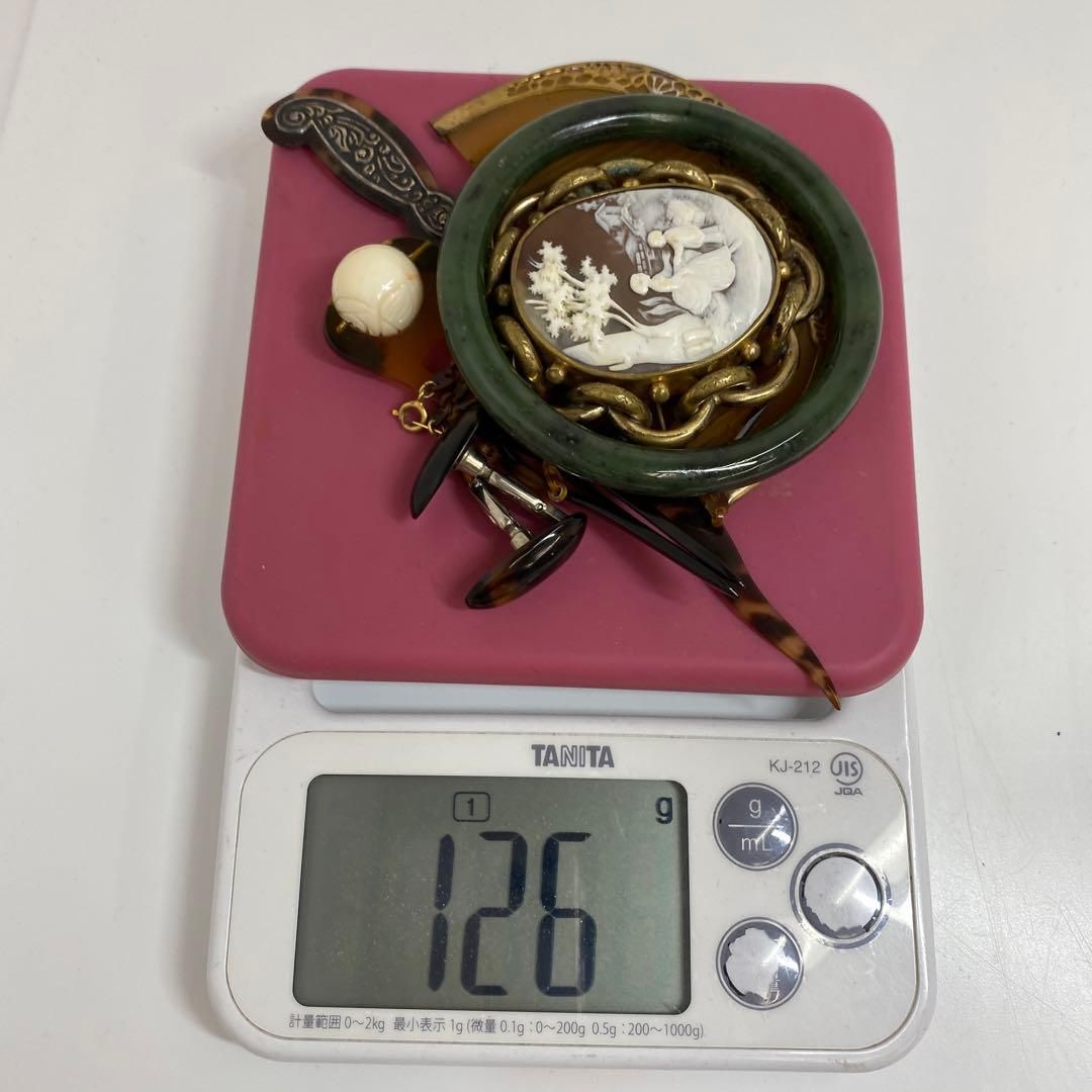本翡翠 バングル 鼈甲 本カメオ等 126 g 東Y 6-1204ア