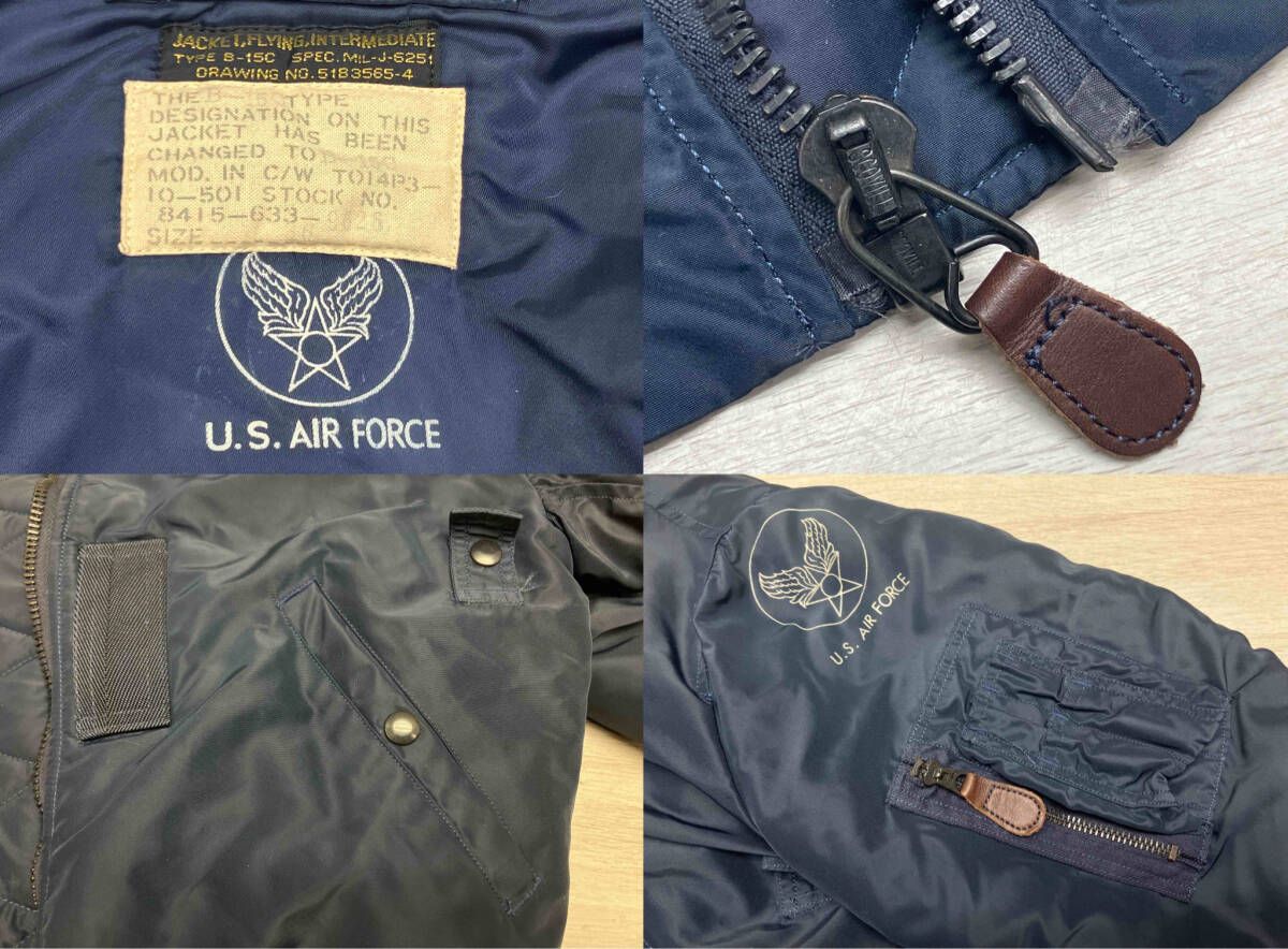 U.S.AIR FORCE B-15 C フライトジャケット MIL-J-6251 古着 ミリタリージャケット ナイロン 中綿 襟 裾 袖口リブ SCOVILLジッパー 36
