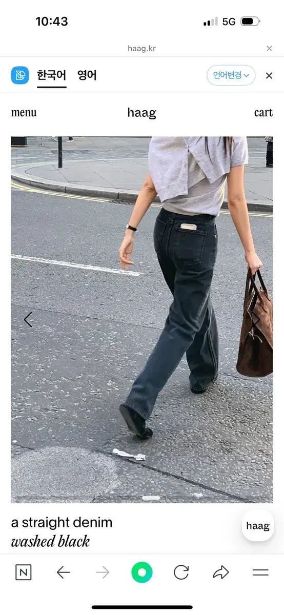 ハーグハーグブランドのストレートデニムウォッシュブラック (ブラックとブルー) カラーです。