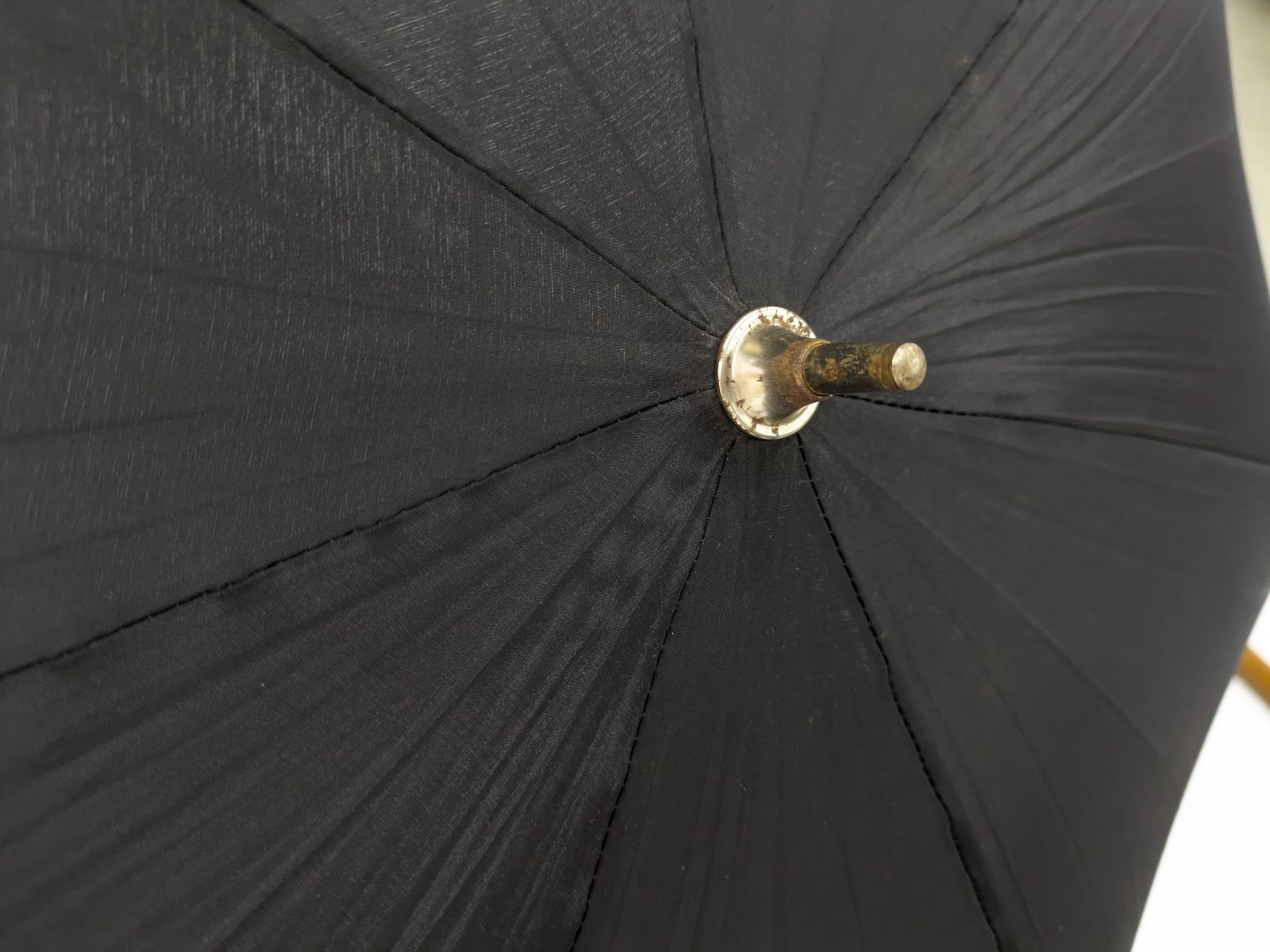 長期間使わず保管してあったとのことで、生地部分には大きなダメージはないようですが、金属部にサビがございます。