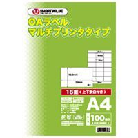 マルチプリンタタイプのOAラベル。●OAシートラベル●業務用パック●総厚:124μm●ラベル厚:71μm●坪量:118g/平方メートル●白色度:80%●規格:18面●片数:9000片●1箱入数:500枚(100枚×5冊)●対応機種:カラーコピー機、モノクロコピー機、カラーレーザー、モノクロレーザー、インクジェット、熱転写プリンタ●材質:上質紙●JOINTEXオリジナル●SMARTVALUEスマートバリュー
