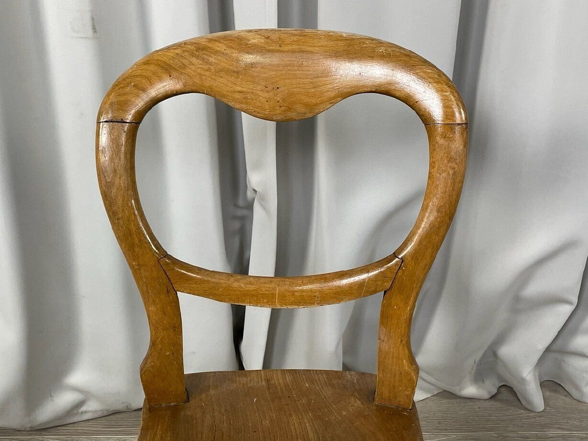 背もたれが風船(バルーン)のように丸い形をしたバルーンバックチェア。それまで主流だった重厚なルイ15世様式とは対象的な、ロココ風のシンプルで優雅なデザインが特徴で、19世紀ヴィクトリア時代に流行しました。柔らかな曲線を取り入れた上品な佇まいが魅力のアンティークチェアです。