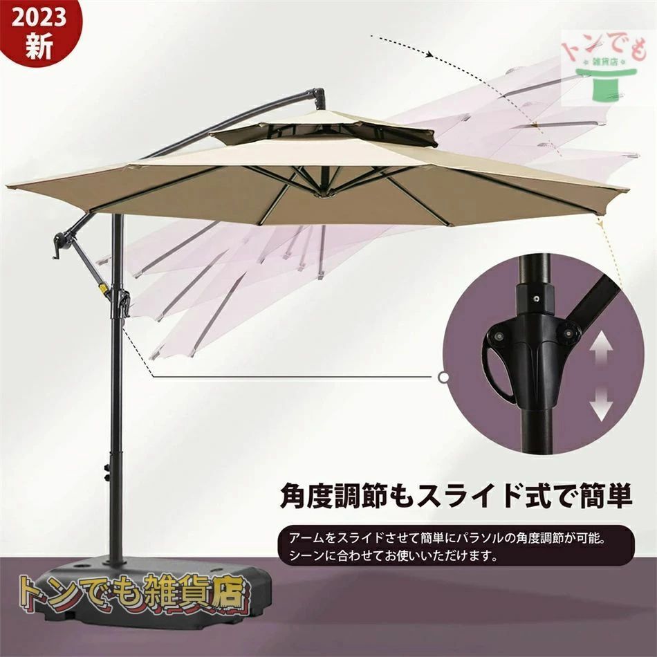 パラソル ガーデンパラソル 大型 風に強い 約 直径270 cm ベランダ ハンギングパラソル UVカット 撥水 角度調整 ベース付き モダ