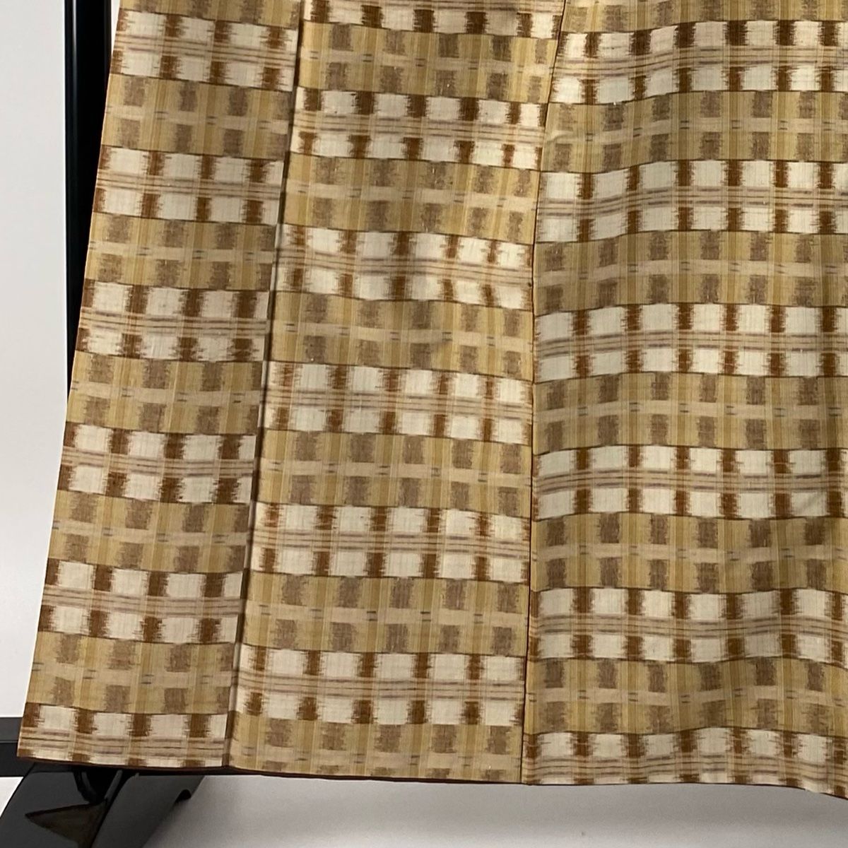 紬 身丈162.5 cm 裄丈65.5 M 袷 横段 幾何学 薄茶色 正絹 秀品