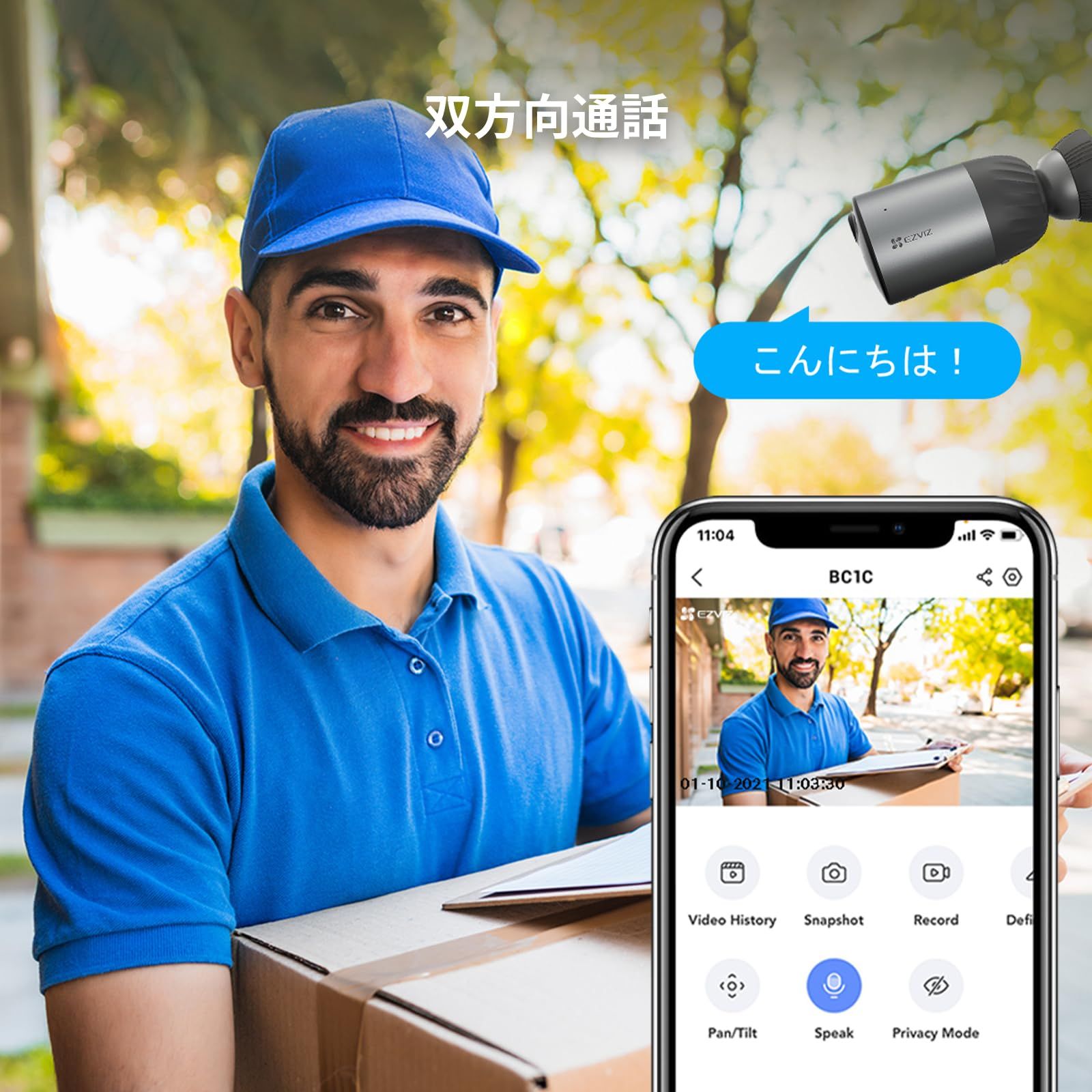 EZVIZ BC1C 2MP マグネット 工事不要 防犯カメラ 屋外対応 210日駆動 ソーラー充電可能 1080p Alexa連携 3年保証 日本語マニュアルQRコード付