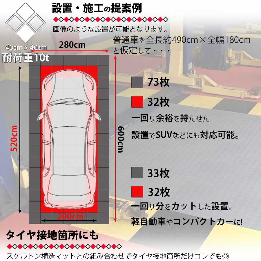 ・当ストア販売のスケルトンタイプのガレージマットとの互換性もあります。