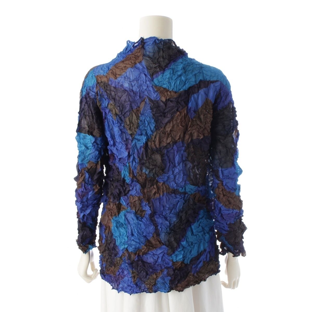 イッセイミヤケ ポリエステル ランダムプリーツ シワ加工 ボトルネック 長袖 トップス マルチ 2