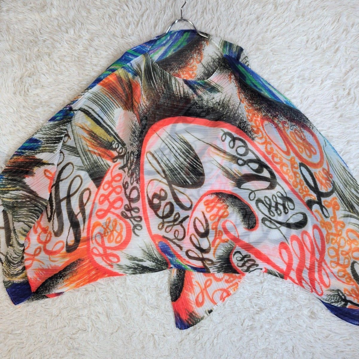 PLEATS PLEASE ISSEY MIYAKE プリーツプリーズイッセイミヤケ FLAME MADAM-T ポンチョ アート 総柄 ケープ マント 和柄 フリーサイズ 三宅一生