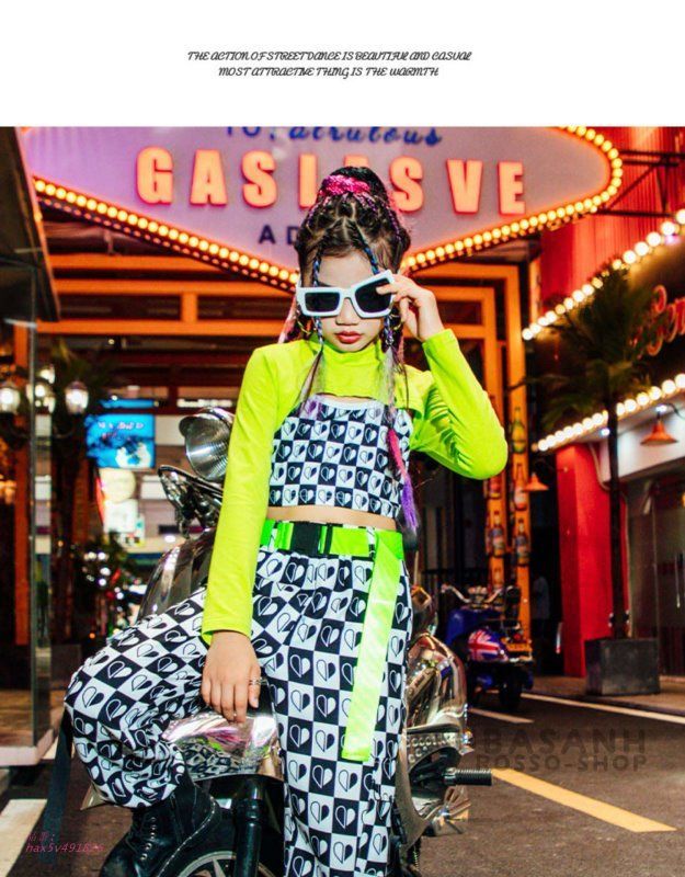ダンス 衣装 キッズ チアガールズ 緑 黒 秋ジャズダンス 韓国 セットアップ 白 ヒップホップ 応援団 春 心 パンツ 練習着 HIPHOP hax 5 v 491826