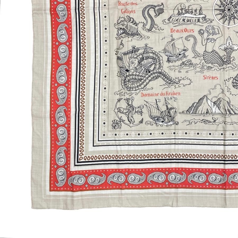 E 3130 エルメス バンダナ カレジェアン140 船乗りのタトゥー 02 ナチュレル ルージュ ノワール Tatouages Marins HERMES