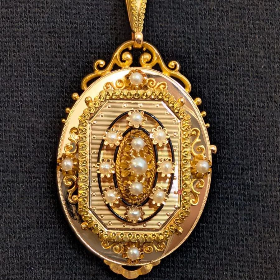フランスアンティーク カラーゴールドとシードパールのペンダント&ブローチです。時代は1880年頃、ナポレオン3世時代のスタイルです。鑑別書が付属します。