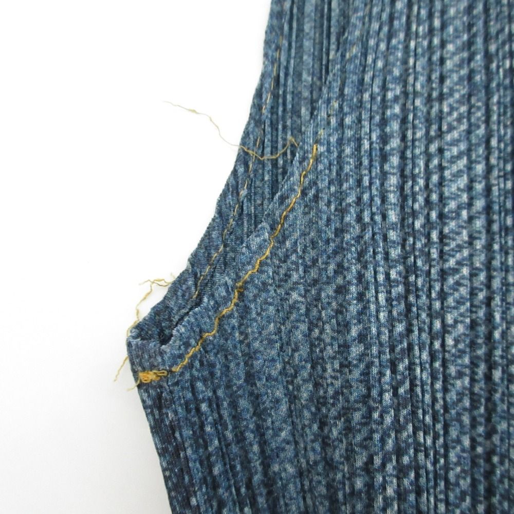 PLEATS PLEASE プリーツプリーズ イッセイミヤケ デニム転写プリント ノースリーブ ワンピース インディゴ レディース 古着