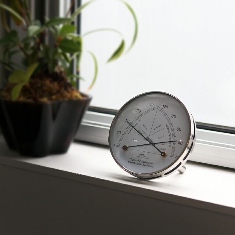 長年、温度計や湿度計などの精密機械を生産してきた、ドイツ Fischer社のスタイリッシュな温湿度計。
