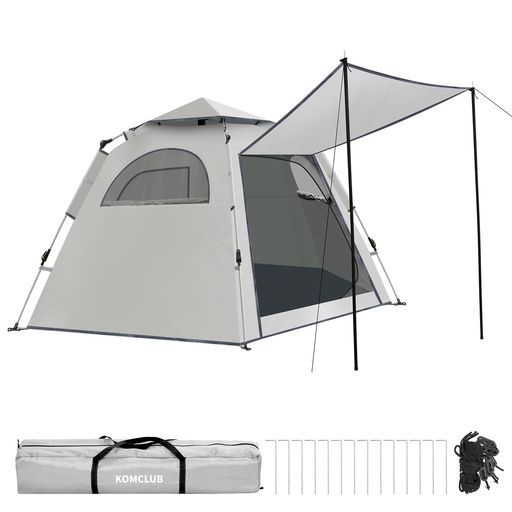 KOMCLUBテントワンタッチテント3 4人用耐水圧2000 mmUVカット設営簡単防風防水防虫対策メッシュ窓付き通気性に優れキャンプテントお花見防災登山アウトドア用収納袋 前室ポール付き