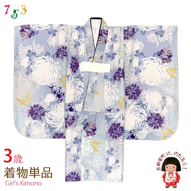 七五三 3歳 着物 女の子 身上げ 肩揚げ加工済み 襦袢付き 三つ身の着物 青灰系 白菊 TY 3 K 11 tan