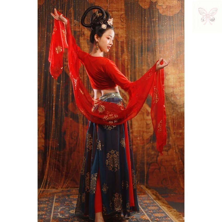 敦煌古典舞踊ダンス衣裳 チャイナ民族ダンス 衣装 飛天 天女 飄々 ダンス 衣装4点セット 5点セット 中華 エスニック 舞台衣装 ステージ衣装
