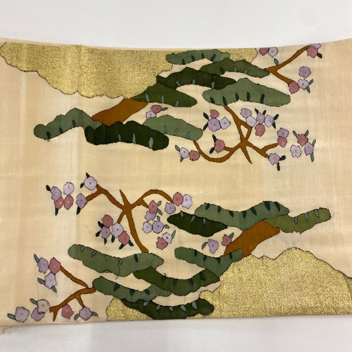 袋帯 枝花 松 金銀糸 薄オレンジ お太鼓柄 正絹
