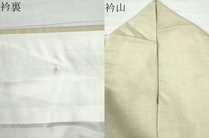 状態は接写画像のように衿裏にホックシミ、衿山に薄い汚れがございますが