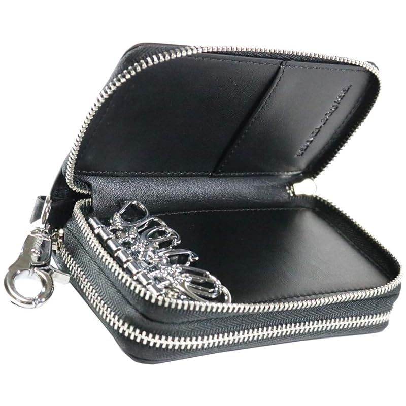 ブラック キーケース 本革 6連 キーリング 紳士 男性 メンズ レディース 鍵 カバー 小銭入れ カード ランドセル スマートキー キーホルダー コインケース 鍵入れ 6本 牛革 車 1050540-F-003 a