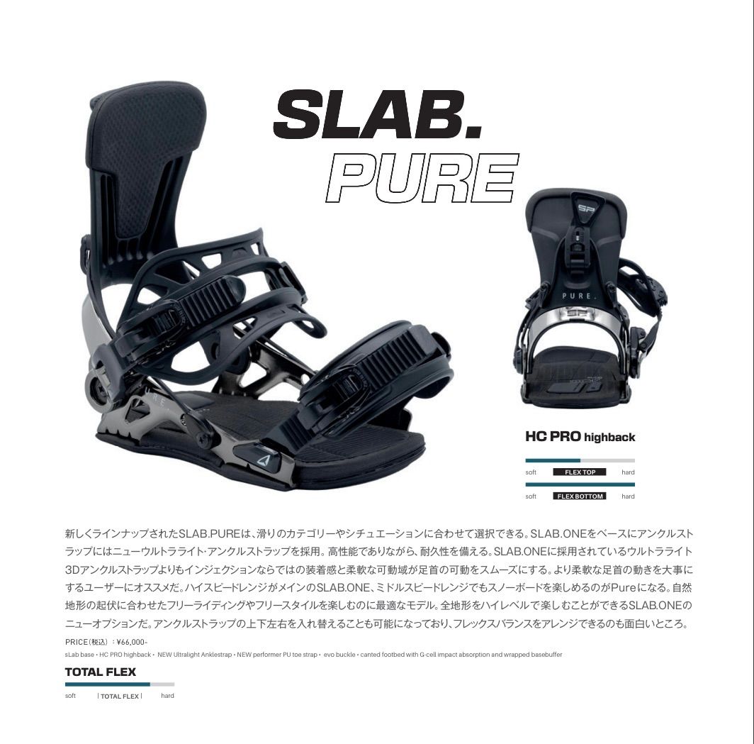SP binding SLAB.PUREは柔らかめのアンクルストラップを採用し、荒れたバーンやパウダーの滑走時に足首で凸凹を吸収しやくなっています。