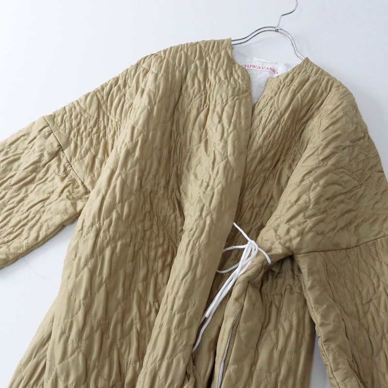 【品名】美品 トワヴァーズ TOWAVASE Permanent robe パーマネント ローブ\ベージュ キルティング ノーカラー コート ペルマナン