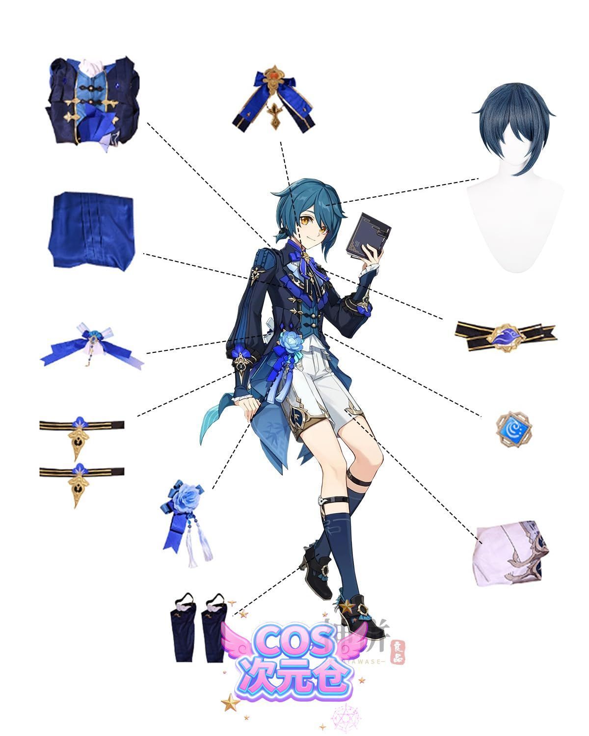 行秋 ウィッグ付き 神併 原神 コスプレ 新キャラ 黒 フリーナ 嘉明 千織 キィニチ マーヴィカ コスプレ衣装 大人用 仮装 Genshin Impact c