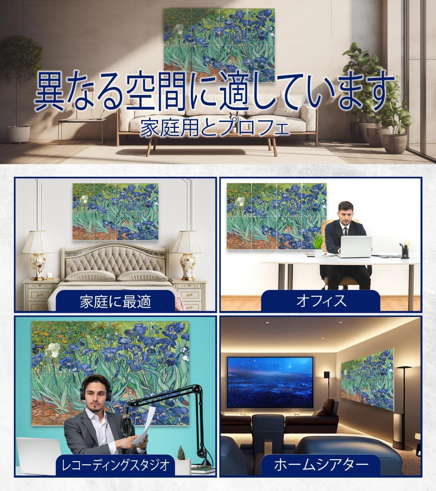 商品 ウォールアート アコースティックパネル 寝室 家 オフィス スタジオレコーディングの壁用防音パネル 装飾的で音を吸収 低減 騒音 反響音を消す 120 x 80 cm ゴッホ_アイリス