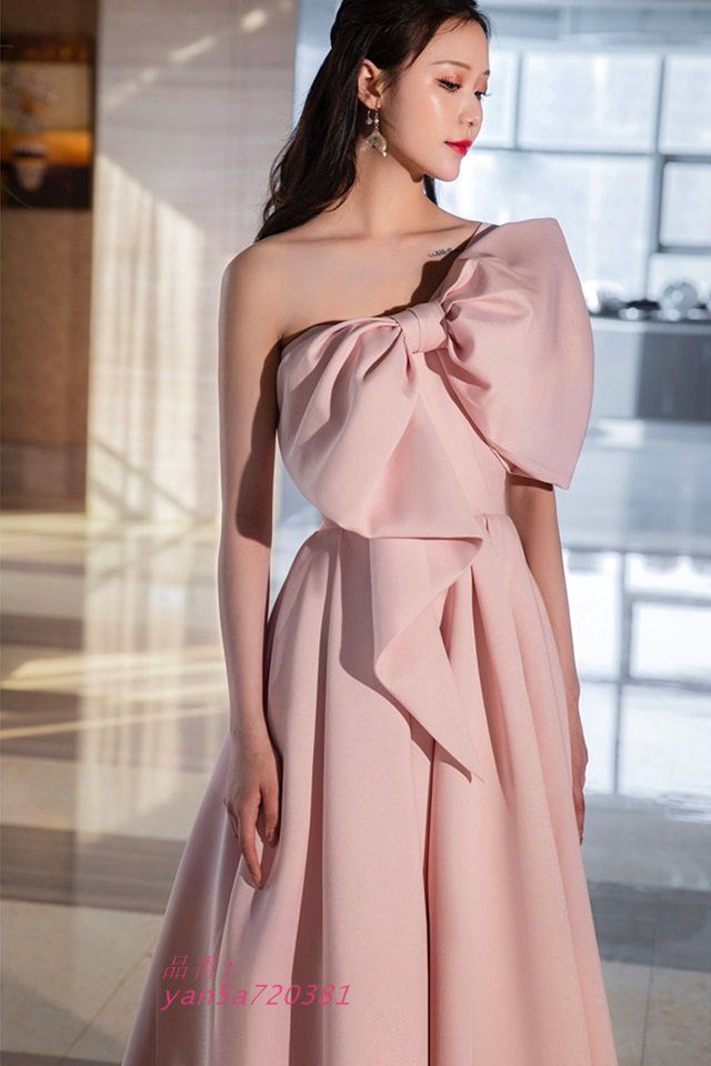 ウェディング カラードレス ウェディングドレス 大きいサイズ 3L 4L 小さいサイズ 演奏会 ロングドレス リボン ワンショルダー ウェディングドレス カラードレス ウエディングドレス