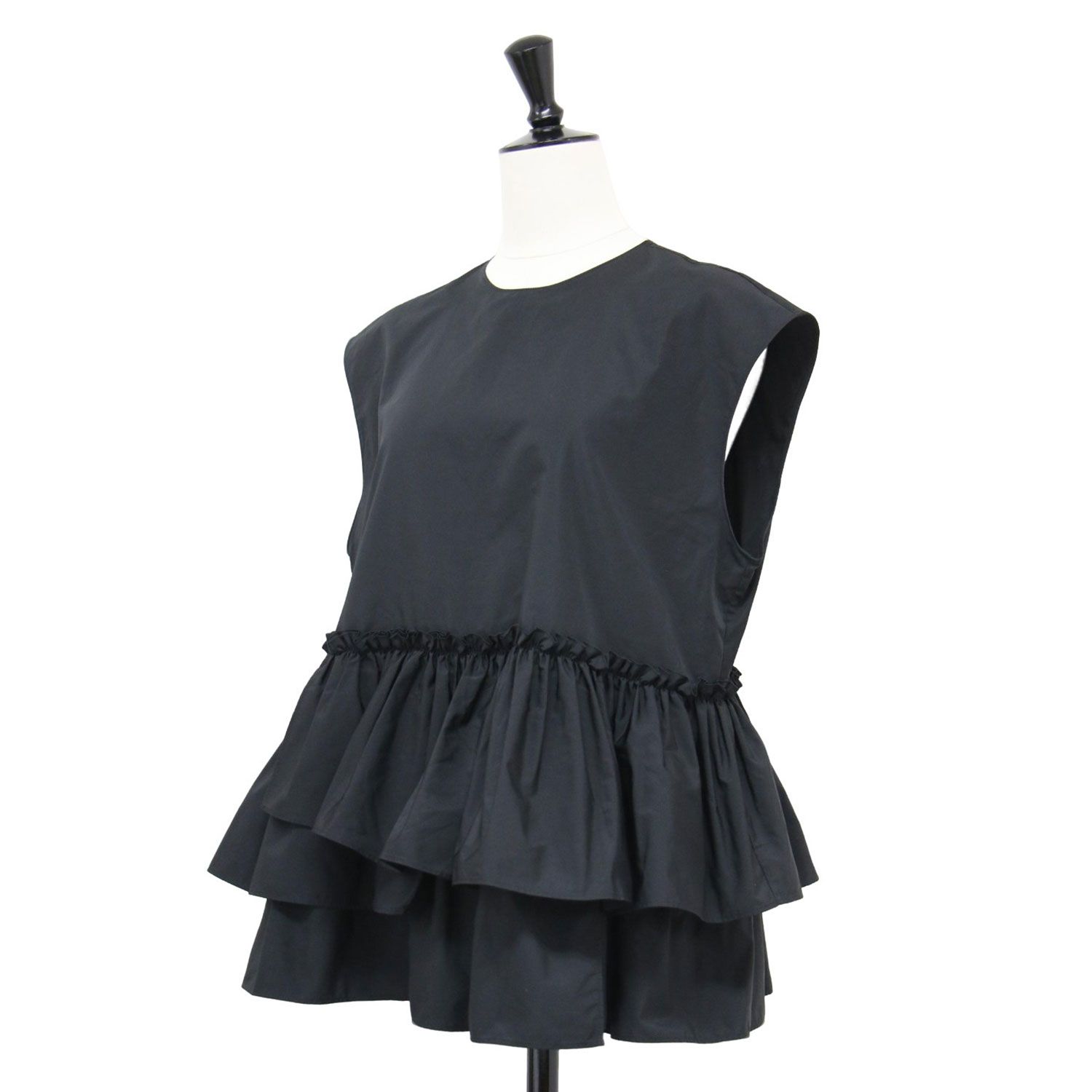 Ballsey ボールジー ブラウス ブラック 黒 サイズ 36 9号 | 23秋冬 ポリエステル シルク マット タフタ ギャザー ティアード プルオーバー ノースリーブ ペプラム トップス シャツ カットソー レディース