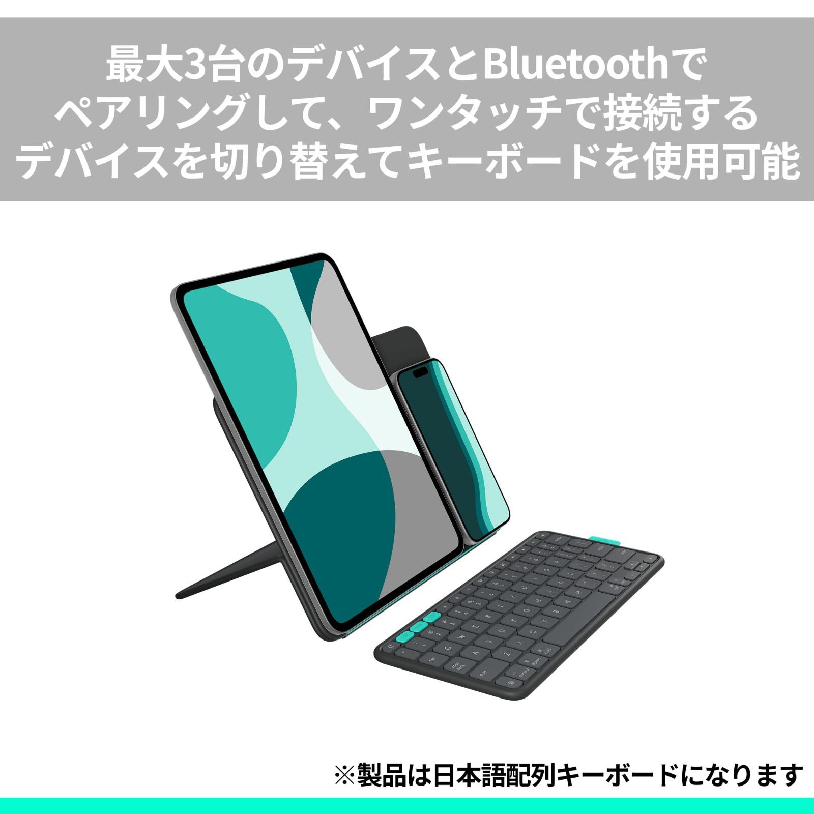 複数のデバイスをワンタッチで切り替えてタイピング / iPadやiPhoneなど最大3台のデバイスとBluetootペアリングして、ワンタッチで接続するデバイスを切り替えてキーボードを使用できます。
