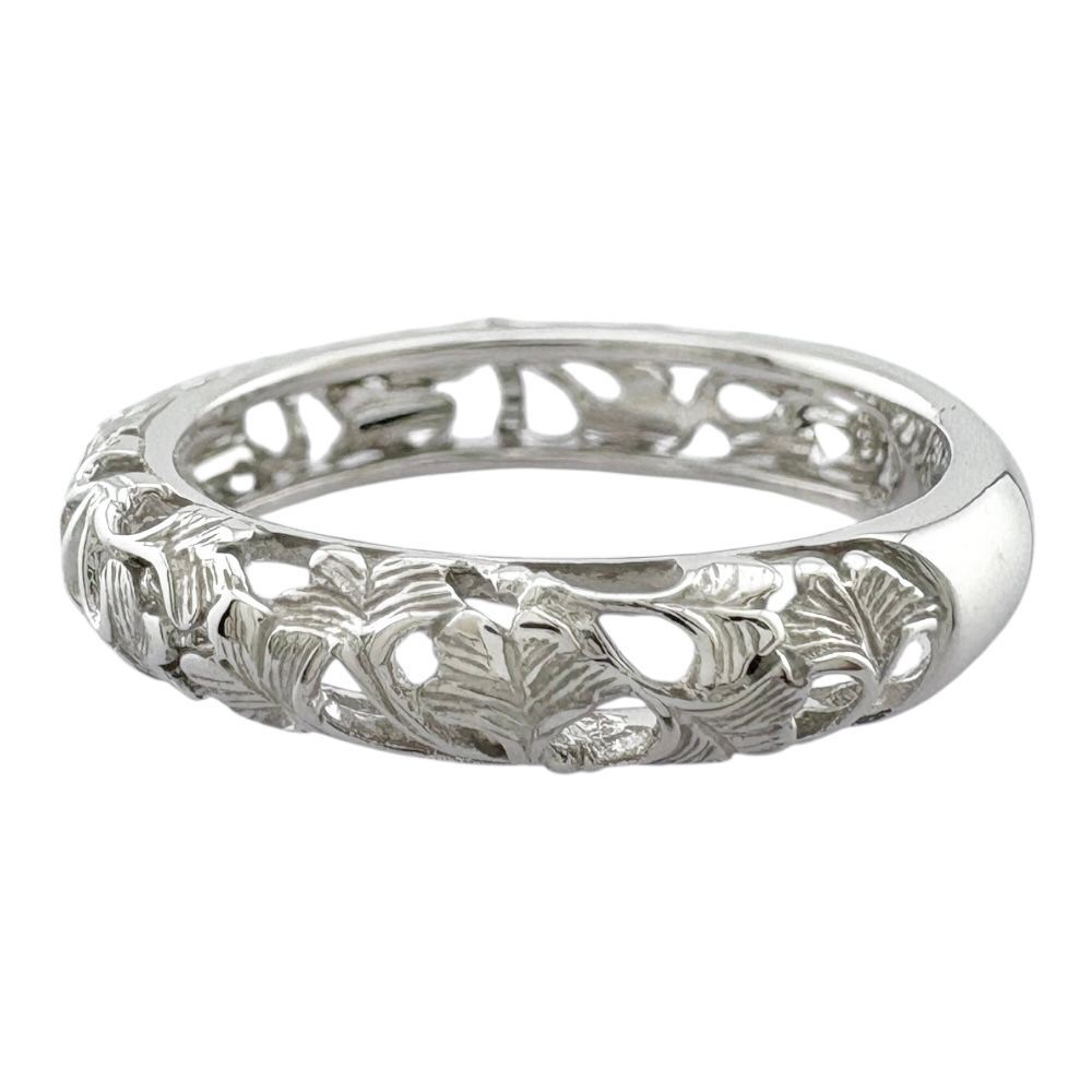 繊細なリーフモチーフの透かし彫りが美しい、クラシカルなデザインのリングです。ホワイトゴールドの洗練された輝きが、手元を軽やかに彩り、上品な雰囲気を演出します。