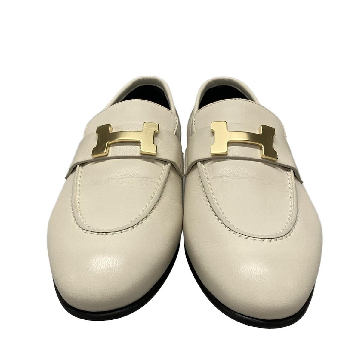 HERMES エルメス ローファー 34 レディース モカシン パリ アイボリー H金具 ゴールド金具 レザー
