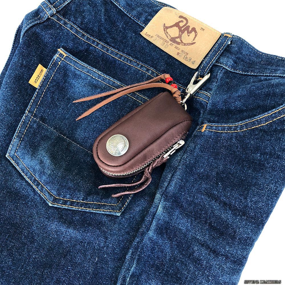 オリジナルコンチョも付属され、レザー革紐にビーズがアクセントになっております。インナーはレバーナスカンが二つ付属されており、鍵を取り外しし易くなっております。