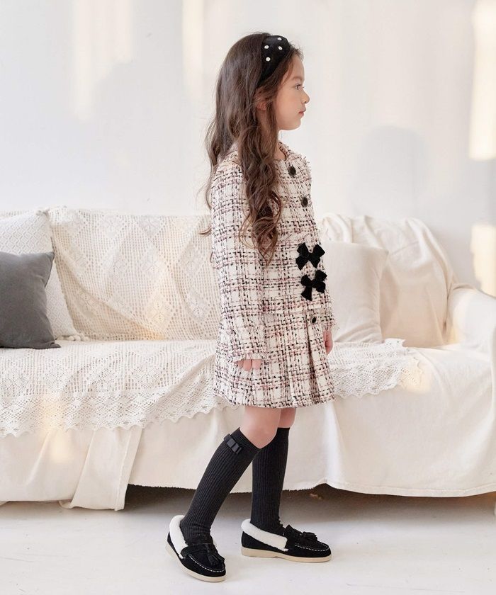 リッチな印象が特徴の暖かみのあるツイード素材のスーツセットアップは、卒園入学シーズンにはぜひおすすめです♪上下セットでスーツの代わりにフォーマルシーズンにクラシカルに対応。