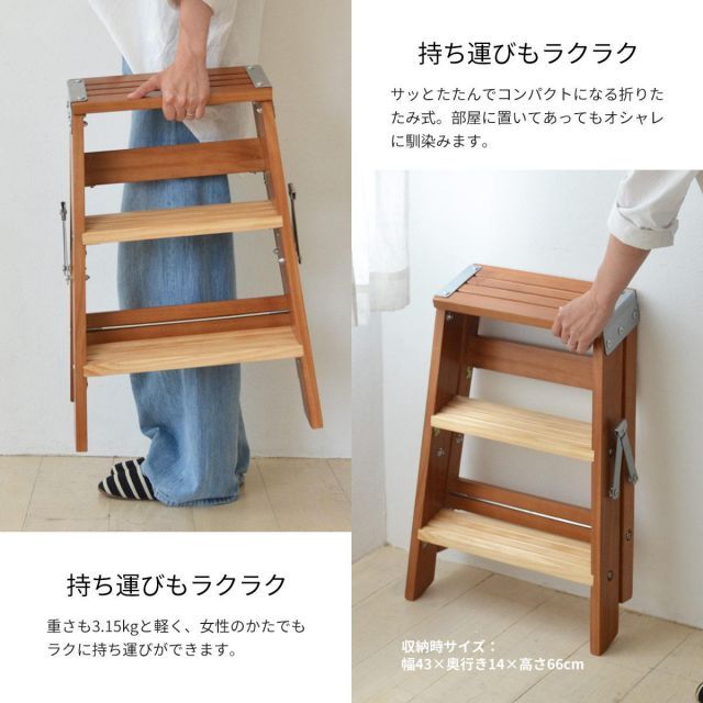 TEXAS ラダーラック TEOR 43 ステップラダー ステップスツール ステップチェアー 脚立 踏み台 足台 DIY おしゃれ 木製 はしご 折りたたみ フォールディング 収納 頑丈 便利 コンパクト 3段