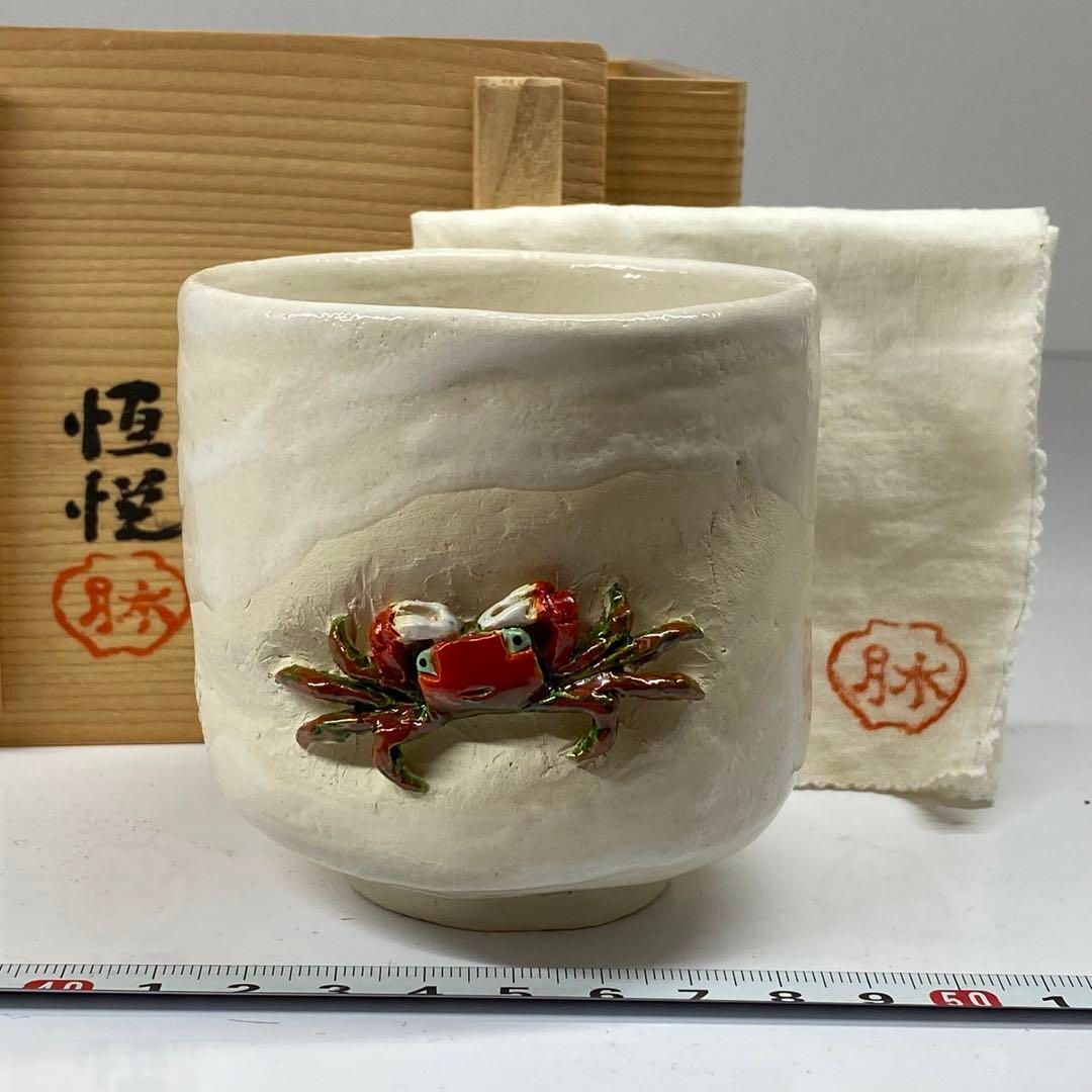 水月焼 二代 好川恒焼造 蟹彫湯呑 共箱 トコチ 東金6 0309 2 F