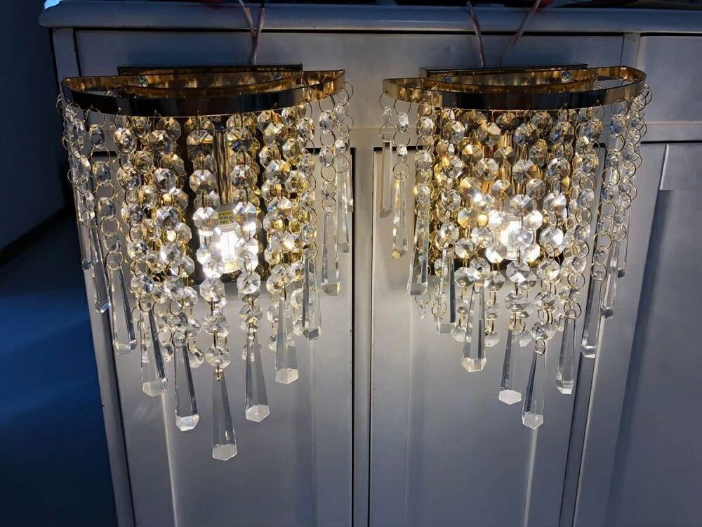 2個セット クリスタルガラス製 ビーズ使用のゴージャス壁掛けシャンデリア ミニシャンデリア ゴールド仕様 北欧